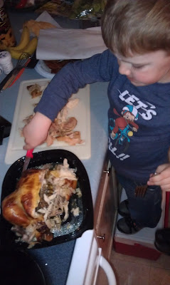 In prepping tonight's dinner (meat off of a rotisserie chicken), I found that my trusty assistant was a very valuable tool when it came to deboning the chicken. I forgot to mention that not only do I not like to look at bones or eat off of them, I really do not want to touch them either. Turns out, my trusty assistant had no problem digging right in. ;) If I ever had any doubt (which I really didn't)....he's definitely a keeper!!